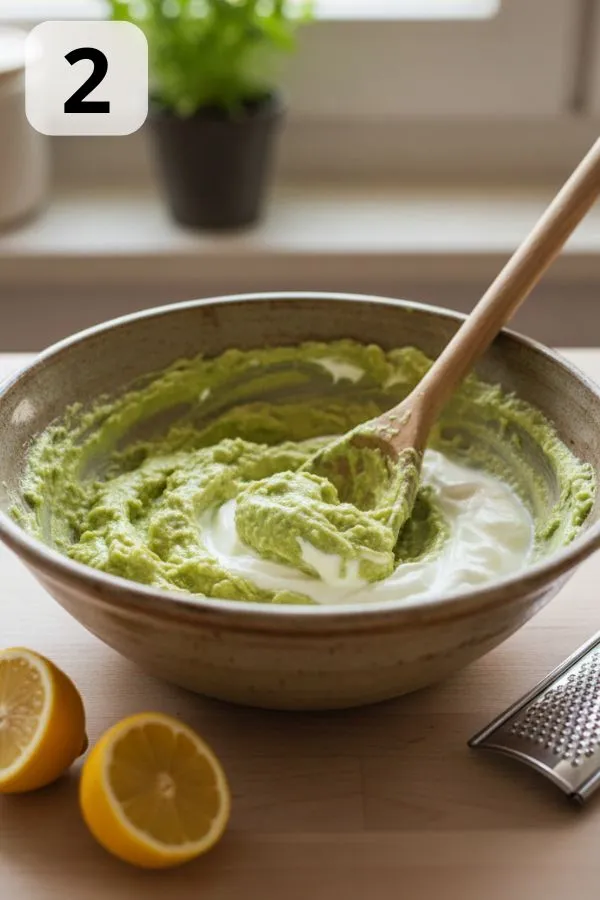 - Step 2: Mash the Creamy Base (1–2 minutes): In a large bowl, mash avocado and Greek yogurt together until mostly smooth. Add lemon or lime juice, salt, and pepper. Want it zippier? Grate in a little zest.