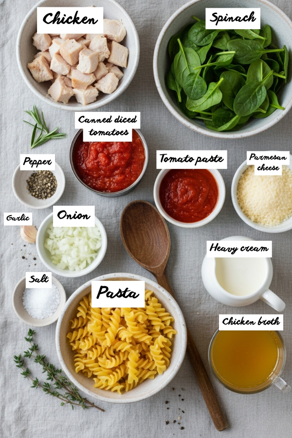 Busy day? You deserve dinner that doesn’t ask for much—a single pan, a handful of ingredients, and half an hour tops. This One-Pot Tomato Spinach Pasta with Chicken checks every box: creamy, rich, balanced, and shockingly simple. It’s the kind of dish that makes you wonder why you ever bothered with multiple pots in the first place.